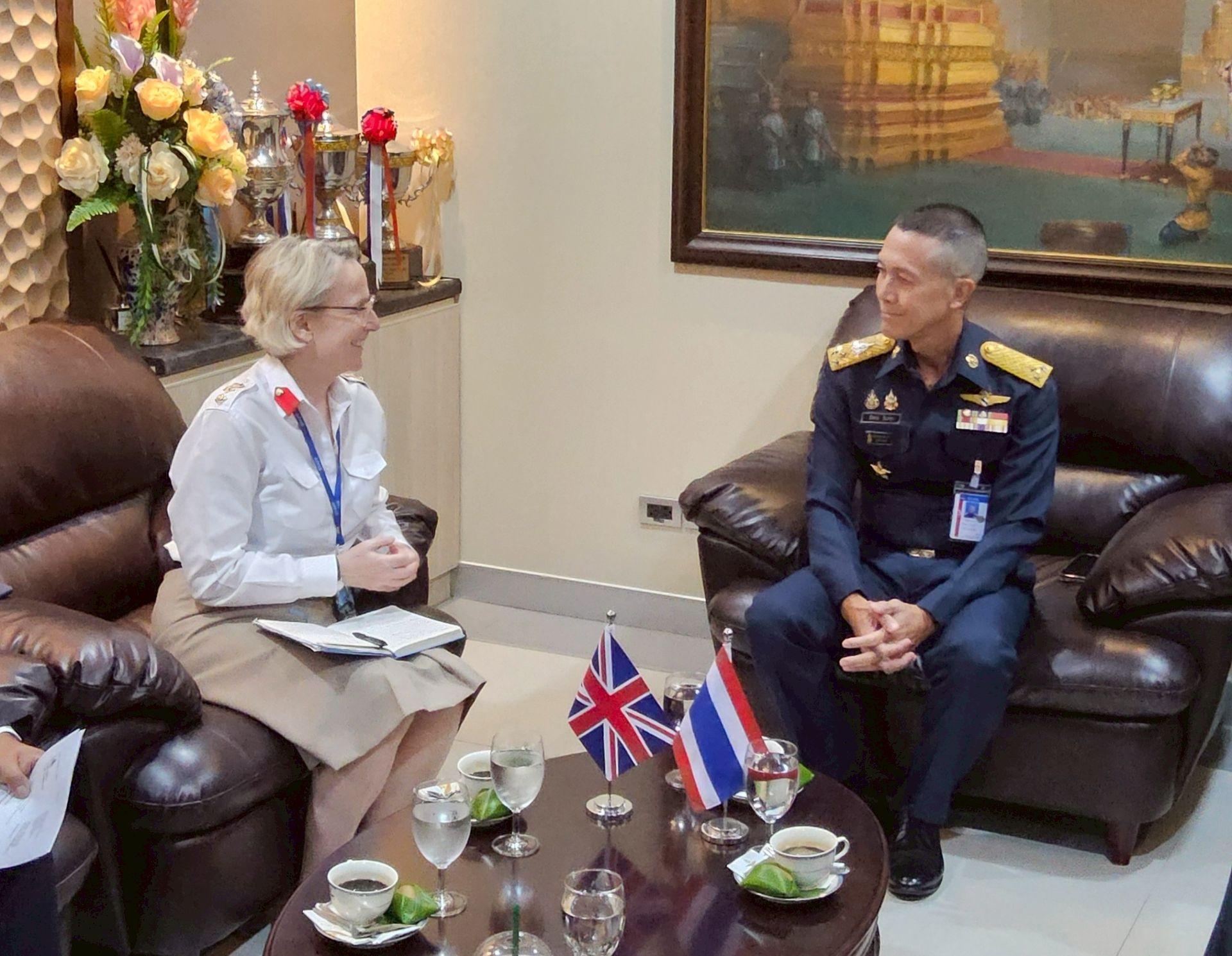 On Tuesday 25 November 2025, Air Marshal Angkharn Indra, Director of Intelligence , together with senior officers of the Directorate of Intelligence, received a courtesy call from Colonel Anna Janes, British Defence Attaché to Thailand. The visit was made to establish communication channels and promote cooperation on matters of mutual interest between the Royal Thai Air Force and the Royal Air Force; at the reception room, Foreign Affairs Division, Office of Policy and Plans, Directorate of Intelligence.