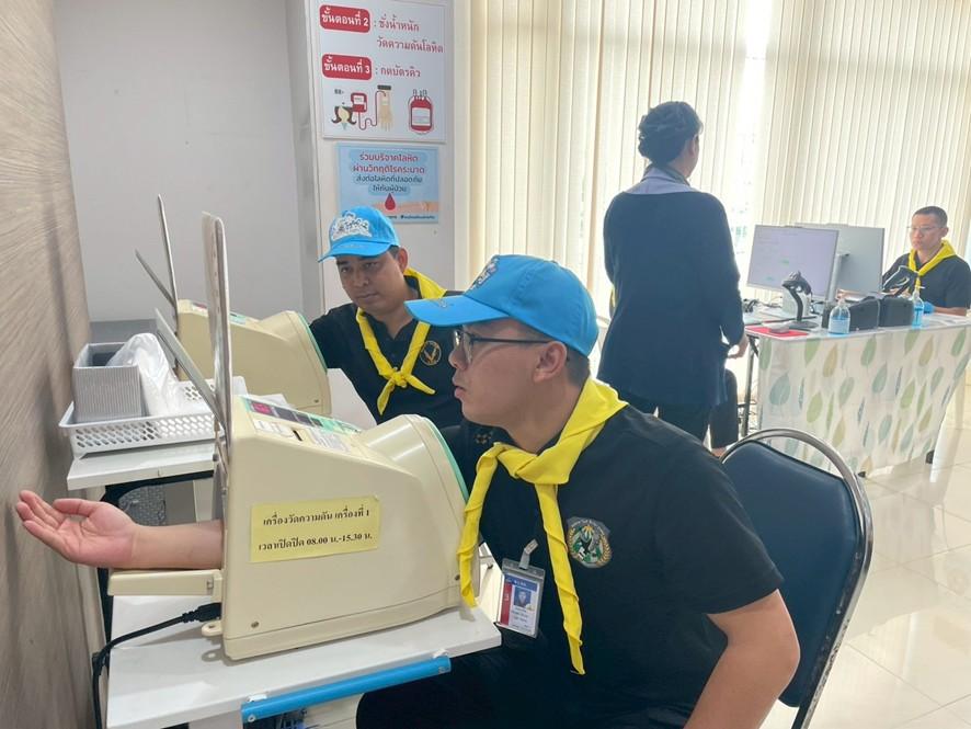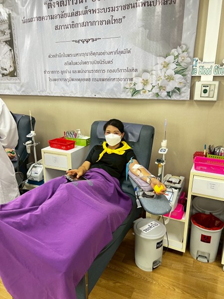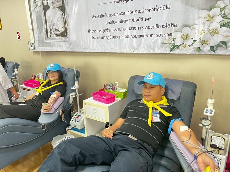 On 18 November 2025, from 09.30 to 10.30 hrs., Group Captain Yuwathep Limlamai, Deputy Director, Security Division, Office of Policy and Plans, Directorate of Intelligence, Royal Thai Air Force, led officers from the Office of Policy and Plans, Directorate of Intelligence to donate beverages, snacks, and blood as a royal merit-making activity in honor of Her Majesty Queen Sirikit, The Queen Mother has ascended to heaven. The activity took place at Bhumibol Adulyadej Hospital, Directorate of Medical Services, Royal Thai Air Force.